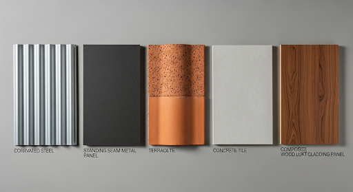 Steel is a leading choice for residential roofs due to its strength, light weight, and variety of profiles, such as corrugated or standing seam. Modern steel cladding offers durability, a sleek appearance, and excellent fire resistance. It provides a safe, long-lasting solution for contemporary roofing.